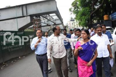 Photo Caption : Mayor Gangambike Mallikarjuna inspects the development works at Steel Bridge at Shivananda Circle with other Councilors and BBMP officials, in Bengaluru on Wednesday 21st August 2019