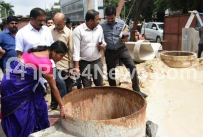Photo Caption : Mayor Gangambike Mallikarjuna inspects the development works at Steel Bridge at Shivananda Circle with other Councilors and BBMP officials, in Bengaluru on Wednesday 21st August 2019