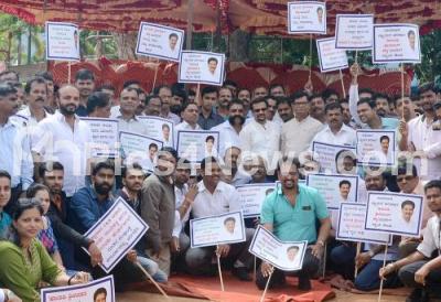 Photo Caption : Members of Bunts Sangha and supporters of Haladi Srinivas Shetty, BJP MLA from Kundapur, staged a protest and demanding for Ministry in the state BJP government, the protest was held at Freedom Park, in Bengaluru on Friday 23rd August 2019