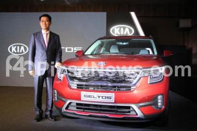 Photo Caption : KIA Motors India CEO and Managing Director, Shim Kook Hyun, poses with the "Seltos" SUV during the car launch at Hotel Lalit Ashok, in Bengaluru on Friday 23rd August 2019