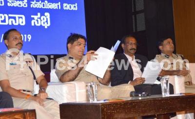 Photo Caption : Police Commissioner Bhaskar Rao with BBMP Commissioner BH Anil Kumar and Police officials at a meeting with various associations and police officers on Gowri Ganesha festival celebrations and procession at a meeting organised by Police Department at Town Hall, in Bengaluru on Friday 30th August 2019