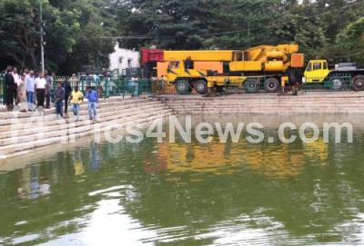 Photo Caption : Mayor Gangambike Mallikarjuna inspecting the Ganesha idols immersion pond at Ulsoor Lake, in Bengaluru on Sunday 1st September 2019
