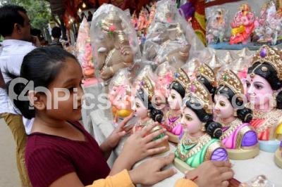 Photo Caption : People shopping for Gowri Ganesha Festival, in Bengaluru on Sunday 1st September 2019