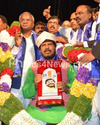 Photo Caption : Union Minister Ramdas Athawale being felicitated by the members of Republic Party of India and Dalits Association during the Dalit Rights and Awareness Conference at Town Hall, organised by Republic Party of India, in Bengaluru on Wednesday 4th September 2019