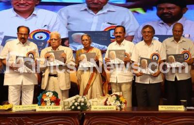 Photo Caption : Union Minister DV Sadananada Gowda with Former CM Veerappa Moily, Dr KR Venugopal, Vice Chancellor, Bengaluru University and others releasing book “Wide as the Sea High as the Sky†on Prof NR Shetty by Bangalore University, to mark the “Teachers Day†celebration program at Jnana Jyothi Auditorium, organised by Bangalore University, in Bengaluru on Thursday 5th September 2019
