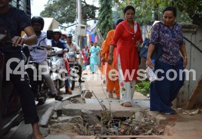 Bad condition of footpath on Kasturba Road, as people are having tough time walking on the footpath, in Bengaluru on Saturday 7th September 2019