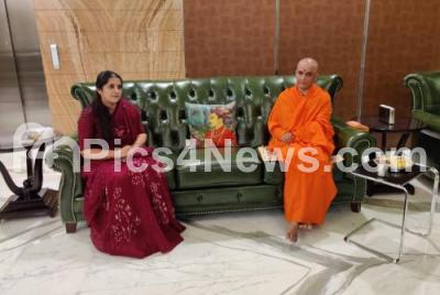 Sri Nirmalananda Swamiji of Adichunchanagiri Mutt called on the family members of Congress MLA DK Shivakumar during the visit to his residence, in Bengaluru on Monday 9th September 2019