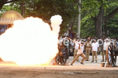 Event Description : Canon shots fired as part of the Dasara 2019 festivities in Mysuru on Friday 13th September 2019