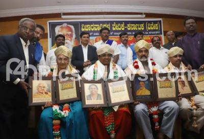 Venkataswamy, President Dalit Association, presenting Periyar Award on the occasion of 140th Jayanti of EV Ramaswamy Periyar, in Bengaluru on Tuesday 17th September 2019
