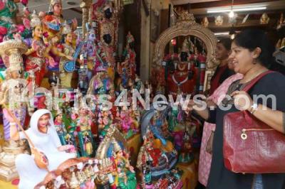 People shopping Dasara dolls at a shop at Malleshwaram for the Dasara festival, in Bengaluru on Friday 20th September 2019