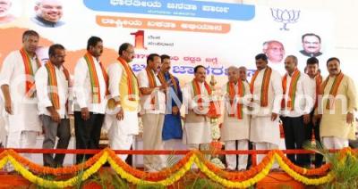 Photo Caption : BJP National Working President JP Nadda with Karnataka BJP State President Nalin Kumar Kateel, DCM Govind Karjola , Union Minister DV Sadananda Gowda, BJP leaders Muralidhar Rao, MPs PC Mohan and Tejasvi Surya, Minister V Somanna and others inaugurating the "One Nation One Constituency" program at Palace Grounds, in Bengaluru on Sunday 22nd September 2019