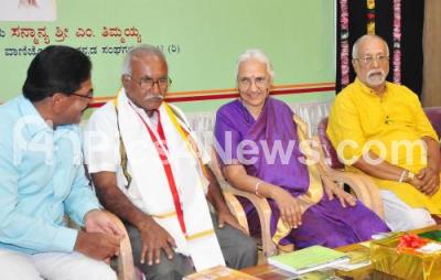 Photo Caption : Former Minister BT Lalitha Nayak with Conference President M Thimmaiah and CK Ramegowda, Honorary Secretary, Kannada Sahitya Parishat seen during 12th "Chutuku Sahitya Sammelana" (Chutuku Literary Conference) at Kannada Sahitya Parishat, in Bengaluru on Sunday 22nd September 2019