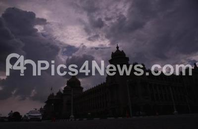 Photo Caption : Monsoon dark clouds over Vidhana Soudha, in Bengaluru on Monday 23rd September 2019