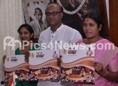 Photo Caption : Mayor Gangambike Mallikarjuna with Abdul Wajid, Ruling Party Leader releasing the achievements book for the one year tenure of the Mayor during a press conference at BBMP, in Bengaluru on Friday 27th September 2019