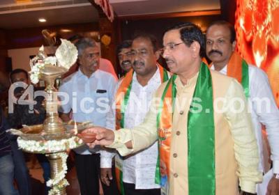 Event Description : Pralhad Joshi, Union Minister of Parliamentary Affairs with MLA Satish Reddy and others inaugurated the National Unity Campaign “One Nation One Constitution” Abrogation of 370 Article, a mass awareness program at Hotel Krishna Grand at Madiwala, organised by BJP, in Bengaluru on Saturday 28th September 2019