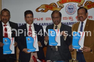 Photo Caption : CR Janardhan, President, FKCCI with Perikal M Sundar, Vice President, FKCCI, CA IS Prasad, Vice President, FKCCI during press conference at FKCCI, in Bengaluru on Thursday 3rd October 2019