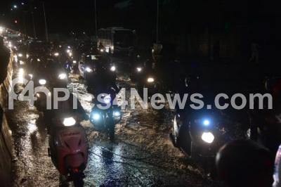 Heavy rains continue to lash Bengaluru City and people had to pass through the rain water logged at Banaswadi Main Road, in Bengaluru on Thursday 3rd October 2019