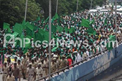 Event Description : Various farmers association participated in a protest rally from Bengaluru City Railway Station to Freedom Park, demanding for relief funds for the farmers affected in floods, in Bengaluru on Thursday 10th October 2019