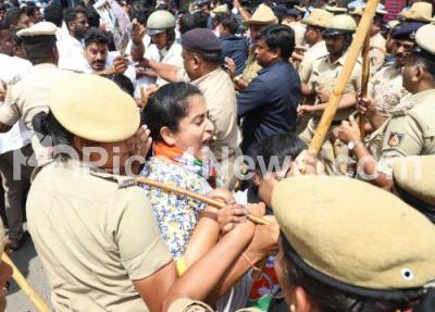 Karnataka Youth Congress members protest against the Central and State Government for releasing less relief funds for the flood affected people in Karnataka, the protest rally was held at Congress Bhavan, the protestors were taken into preventive custody by the police, in Bengaluru on Saturday 12th October 2019