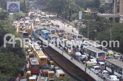 Photo Caption : Heavy traffic jam reported at Sheshadri Road, due to the movement of convoy of President of India, Ram Nath Kovind during his visit to Bengaluru City on Saturday 12th October 2019