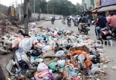 Photo Caption : Garbage piled up at Thimmaiah Road, RT Nagar, in Bengaluru on Monday 14th October 2019