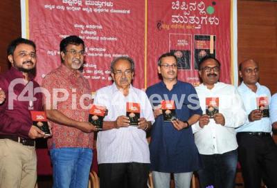 P Seshadri, Film Director with Prof Ashwath Narayana, Dr Ragavendra, Dr Prasanna Kumar, Vidwams T V Mohan Das, G Prashanth Patange and others at the release of "Chippinalli Muttugalu" (Pearls inside a shell) book at Kannada Sahithya Parishat, in Bengaluru on Sunday 20th October 2019