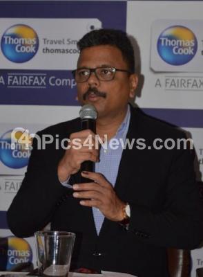 Photo Caption : Rajeev Kale, President and Country Head Holidays, MICE, Visa, Thomas Cook India Ltd, addressing a press conference on Thomas Cook India Ltd at a private hotel, in Bengaluru on Thursday 24th October 2019