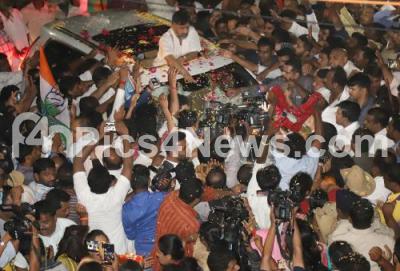 Photo Caption : Congress MLA DK Shivakumar gets a grand welcome from congress workers after arriving at the KPCC Office from BIAL after getting bail from the Delhi High Court in connection with a money laundering case, in Bengaluru on Saturday 26th October 2019