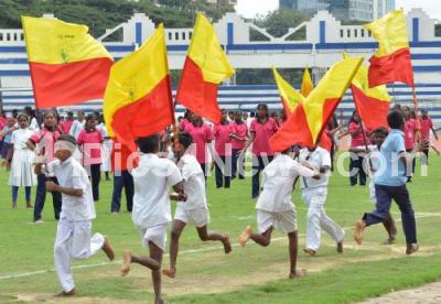 Event Description : Children participated in the rehearsals in the cultural programme for the upcoming Kannada Rajyotsava Day (Karnataka State Formation day) function at Kanteerava Stadium, in Bengaluru on Wednesday 30th October 2019
