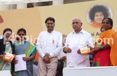 Photo Caption : CM BS Yediyurappa with Minister Manjula Jolle, C Srinivas, Chairman Sri Sathya Sai Health and Education Trust and others handing over the nutrition food to pregnant women during the launch of multiple initiatives towards “End Malnutrition Campaign†at Vidhan Soudha, organised by Sri Sathya Sai Health and Education Trust, in Bengaluru on Thursday 31st October 2019