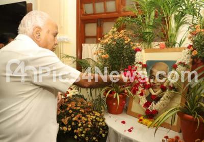 Photo Caption : CM BS Yediyurappa paid tribute to Sardar Vallabhai Patel, portrait, on the National Unity Day program to mark the National Integration Day on the occasion of birth anniversary celebration of Iron Man of India, Sardar Vallabhai Patel at Vidhan Soudha, in Bengaluru on Thursday 31st October 2019