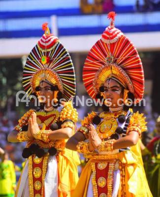 Photo Caption : Yakashagana artistes cultural dance program during 64th Kannada Rajyotsava Day (Karnataka State Formation day) celebration at Kanteerava Stadium, in Bengaluru on Friday 1st November 2019