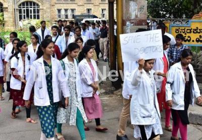 Event Description : Hundreds of post graduate students and resident doctors belonging to the Bangalore Medical College and Research Institute staged a protest in front of the state run Minto Ophthalmic Hospital asking for better security claiming that a doctor was assaulted, in Bengaluru on Saturday 2nd November 2019