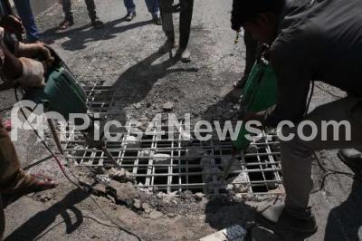 Photo Caption : Traffic has been diverted by traffic policemen after a portion of Sumanahalli bridge crumbled and collapsed on the road, repair work is under progress, in Bengaluru on Saturday 2nd November 2019