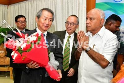 Photo Caption : CM BS Yediyurappa meeting with Former Ambassador of Japan Hirabayashi and Japan Consul General, Takayuki Kitagawa committee at Home office Krishna, in Bengaluru on Friday 8th November 2019