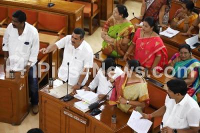 Photo Caption : Ruling party leader Munendra Kumar and BJP Councilors addressing during BBMP Council meeting at BBMP, in Bengaluru on Friday 8th November 2019