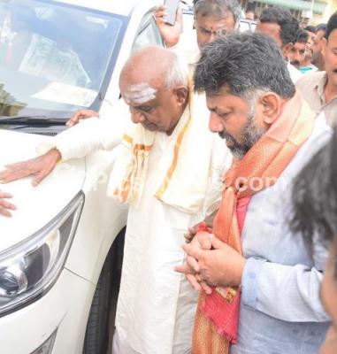 Event Name : DK Shivakumar with HD Devegowda at Chamundeshwari Temple