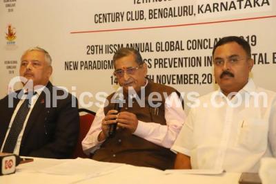 Photo Caption : RK Sinha, Rajya Sabha Member and CMD IISSM with Rajan Medekar, DG IISSM and Prakash, Secretary Karnataka Security Association addressing a press conference on the upcoming IISSM 29th Global Conclave 2019 at Hotel Conrad, in Bengaluru on Tuesday 12th November 2019