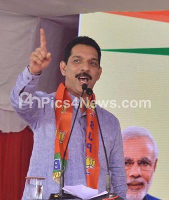 Photo Caption : BJP State President Nalin Kumar Kateel addressing during a program to induct the disqualified MLAs at BJP office, in Bengaluru on Thursday 14th November 2019