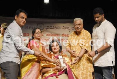 Photo Caption : DCM Dr Aswath Narayan presenting "Padmabhushana B Sarojadevi" national award to Late Actor Ambareesh being received by MP and Actress Sumalatha during a program at Bharatiya Vidya Bhavan, also seen are Senior Actress Sarojadevi and Abhishek Ambareesh and H N Suresh, Director, Bharatiya Vidya Bhavan , in Bengaluru on Sunday 17th November 2019