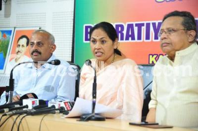 BJP MP Shobha Karandlaje addressing press conference at BJP State office, in Bengaluru on Monday 25th November 2019