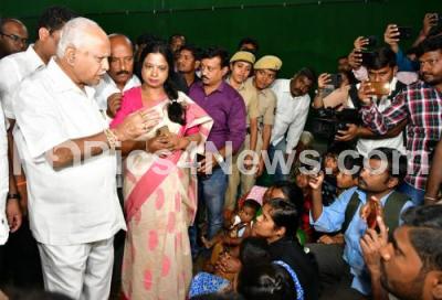 Photo Caption : CM BS Yediyurappa interacting with flood victims of Hulimavu lake breach on Sunday, in Bengaluru on Tuesday 26th November 2019