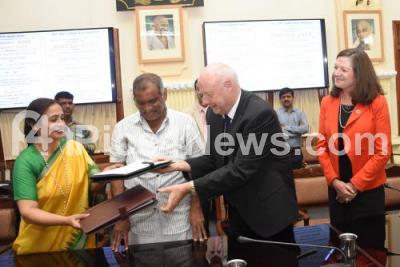 Minister JC Madhuswamy seen with Freddy Svane, Ambassador of Denmark, Dr Shalini Rajneesh, IAS, Principal Secretary Government of Karnataka and others seen at the launch of Sister City and memorandum of understanding signed between Tumakuru Smart City Ltd and Aalborg Smart City Denmark during the program at Vidhan Soudha, in Bengaluru on Thursday 28th November 2019