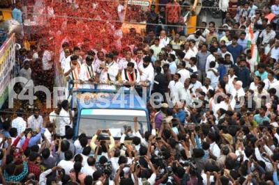 MLA DK Shivakumar and Congress Leaders campaigning with Congress Mahalakshmi Layout candidate Shivaraj for the upcoming Bye Elections, the campaign was held at Mahalakshmi Layout Constituency, in Bengaluru on Friday 29th November 2019