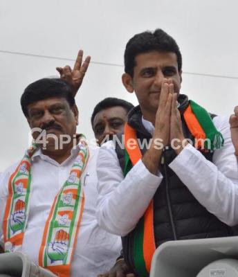 Shivajinagar Assembly Constituency Congress Candidate Rizwan Arshad campaigning for the upcoming Bye Elections at Corporation Circle, Shivajinagar Assembly Constituency, in Bengaluru on Tuesday 3rd December 2019