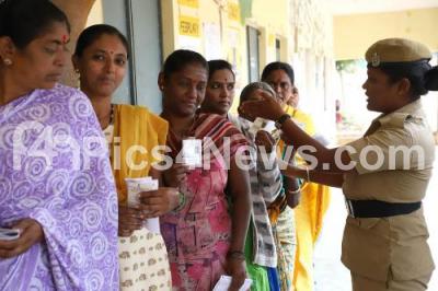 Photo Caption : People standing in the queue at Ramasandra Election Booth, to cast their vote for the Yeshwanthapura Assembly Bye Election, in Bengaluru on Thursday 5th December 2019