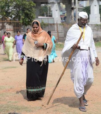 Photo Caption : Yeshwantha Pura constituency Independent candidate Shambu Linge Gowda arriving to cast his vote at Yeshwantha Pura constituency for the Karnataka Assembly Bye election, in Bengaluru on Thursday 5th December 2019