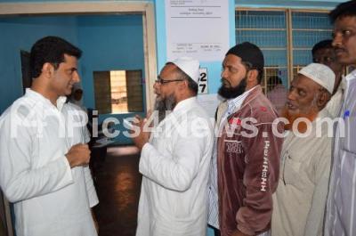 Photo Caption : Rizwan Arshad Shivajinagar Congress candidate interacting with voters at Shivaji Nagar election booth following Shivaji Nagar Assembly Bye Election, in Bengaluru on Thursday 5th December 2019