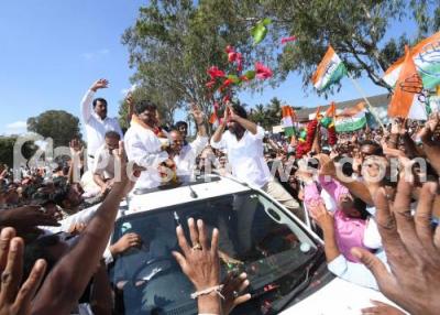 Photo Caption : Congress Hunsur Candidate HP Manjunath with supporters celebrating after winning the Bye Elections, in Hunsur on Monday 9th December 2019