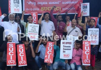 Members of SUCI staged a protest against the Citizenship Amendment Bill proposed by the Central Government, the protest was held at SBM Circle, in Bengaluru on Tuesday 10th December 2019